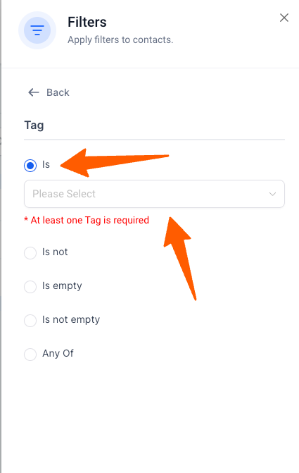 - Choose “Tag” and then select “Is” and choose the tag you will be using for failed SMS.