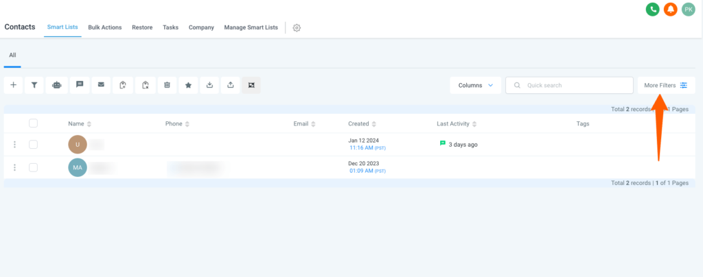 - Navigate to Contacts > Contacts/Smart Lists.