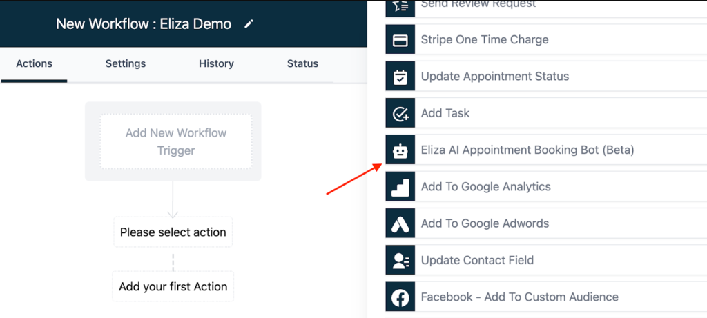 Eliza is built on top of Google’s Dialog flow technology, allowing for powerful, automated booking conversations for your customers. Follow these steps to set up Eliza for your Workflows, allowing you to automate your appointment booking process: