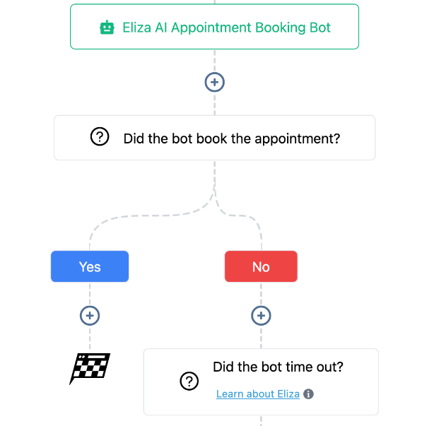Step 5: If the bot did not book the appointment, the next path option will be “Yes” or “No” for did the bot time out?