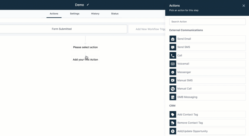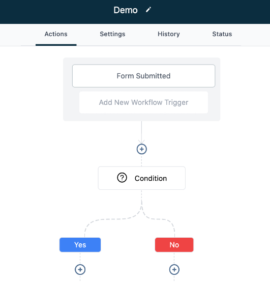- Click the + to add an action to the Workflow.