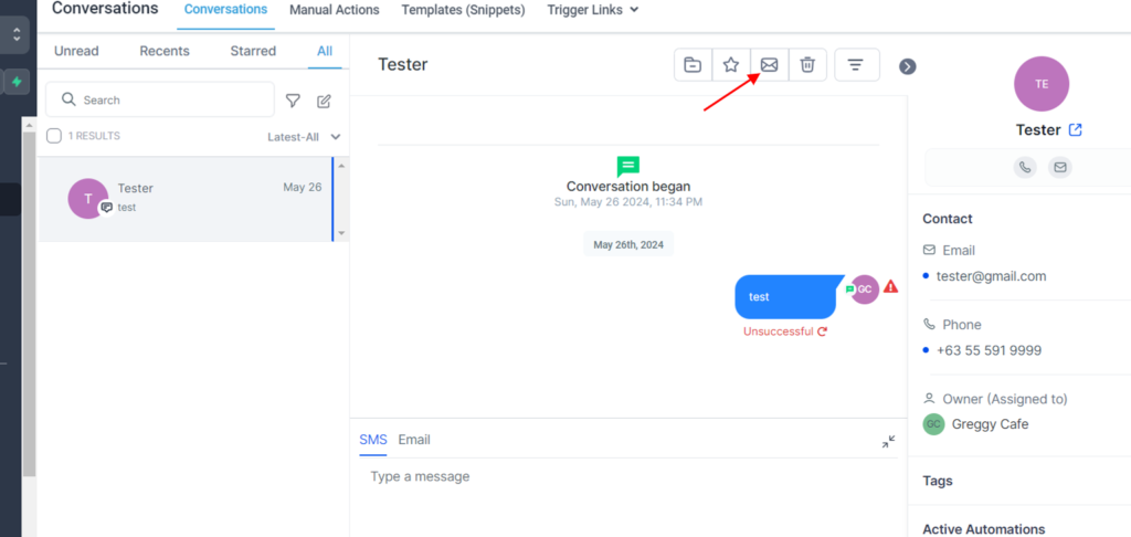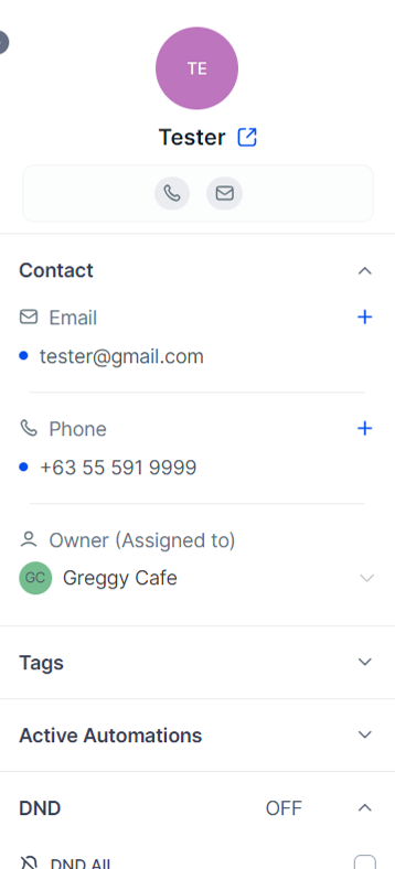 - You can add tags, toggle on or off the DND, and you can also add them to a campaign by clicking the add button under active campaigns.