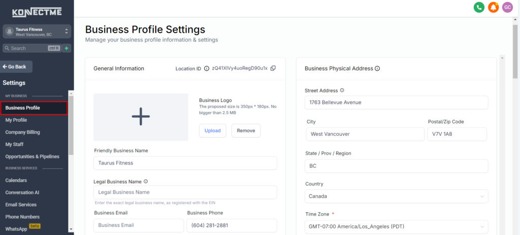 - Enter or update your company’s name, address, phone number, website URL, and other relevant information.
